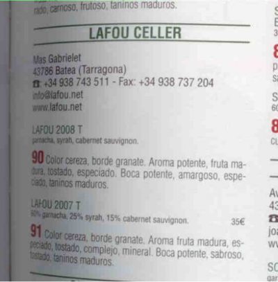LAFOU 2007 recomanat per Josep Roca (sommelier del restaurant El Celler de Can Roca) en el programa “En clau de vi”