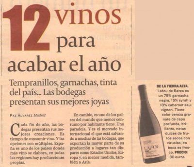 Durant el mes d’octubre s’ha ofert a la Secció Enoteca de El Periódico LaFou El Sender 2011. Aquesta selecció de [...]