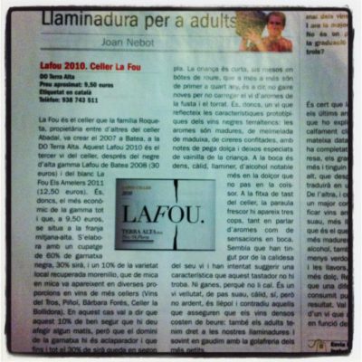 LaFou 2010 ha sortit al Dominical de el diari "El Periódico" del diumenge, 5 de maig. Ha estat el vi [...]